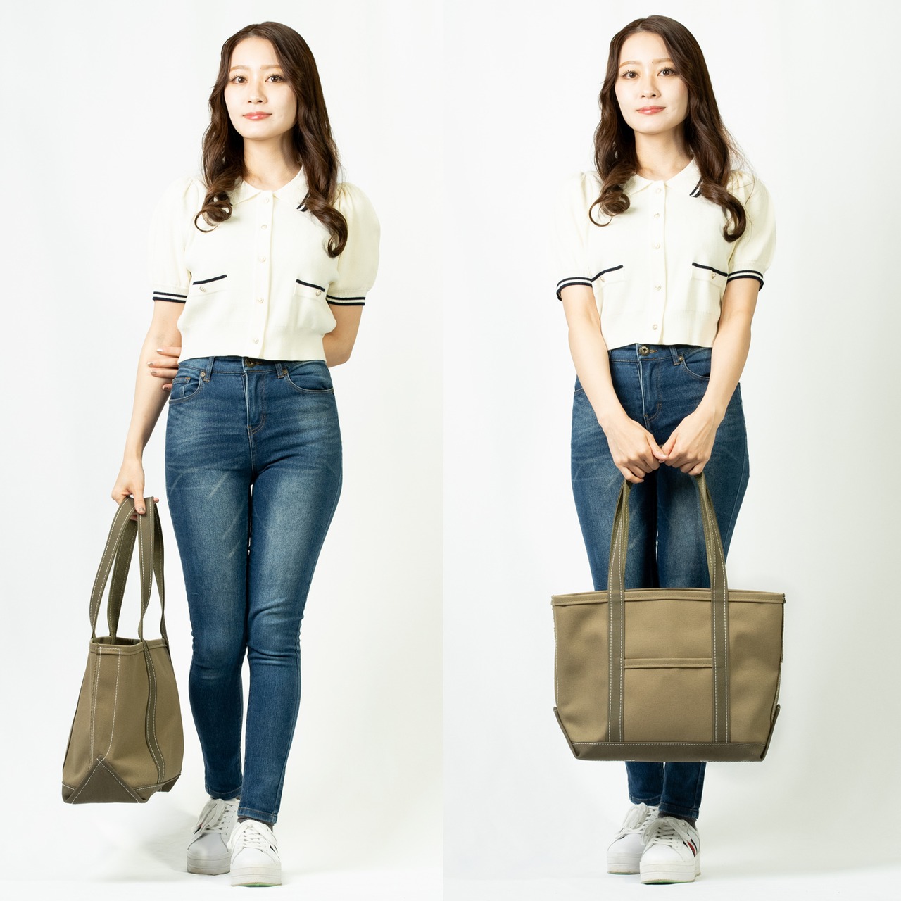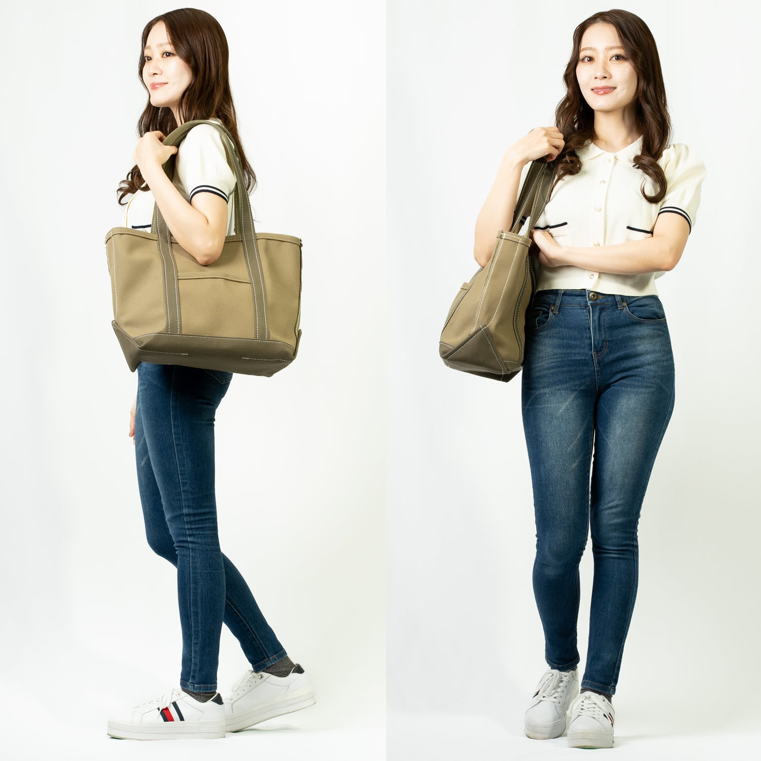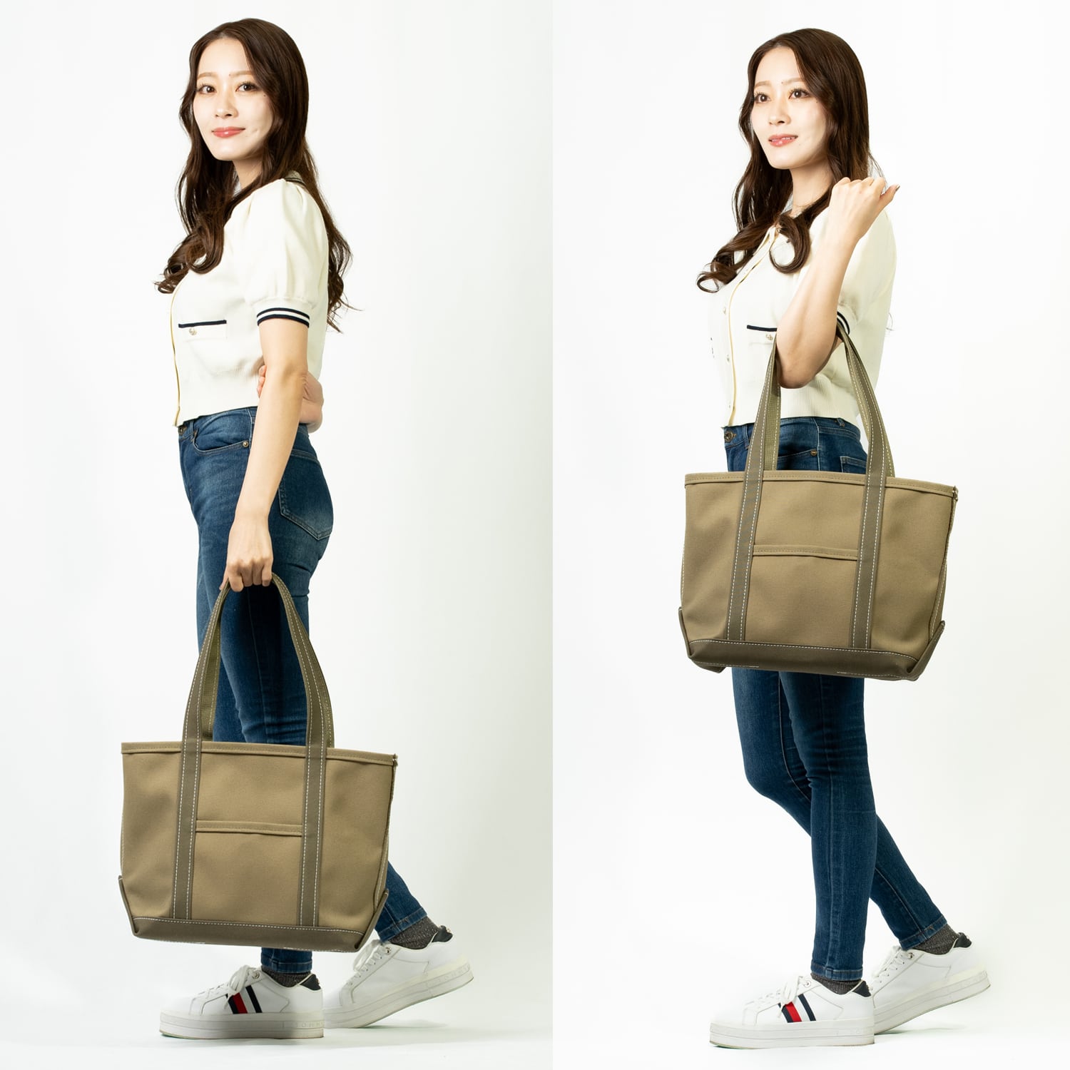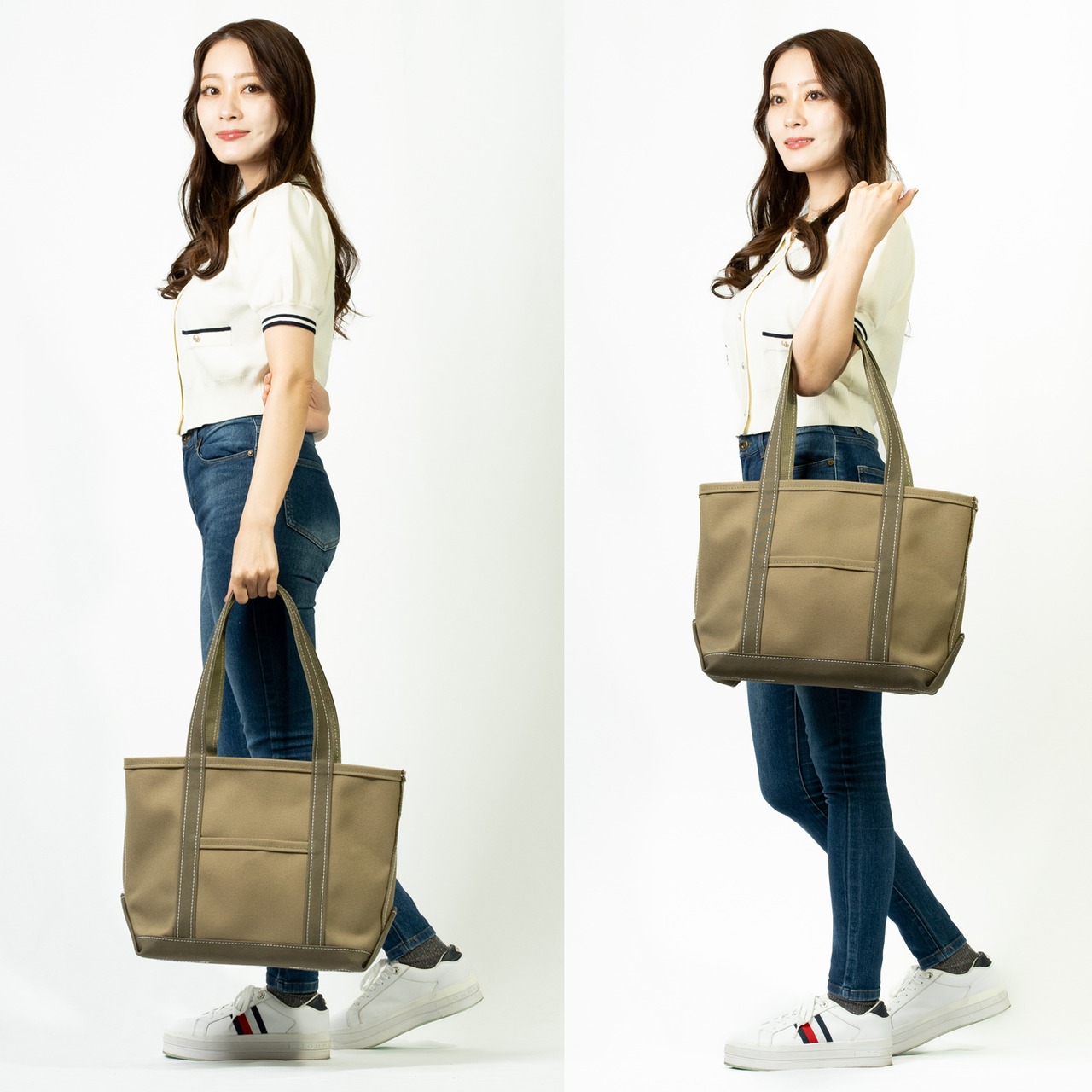 肩掛けしやすいロングハンドルのトートバッグです。