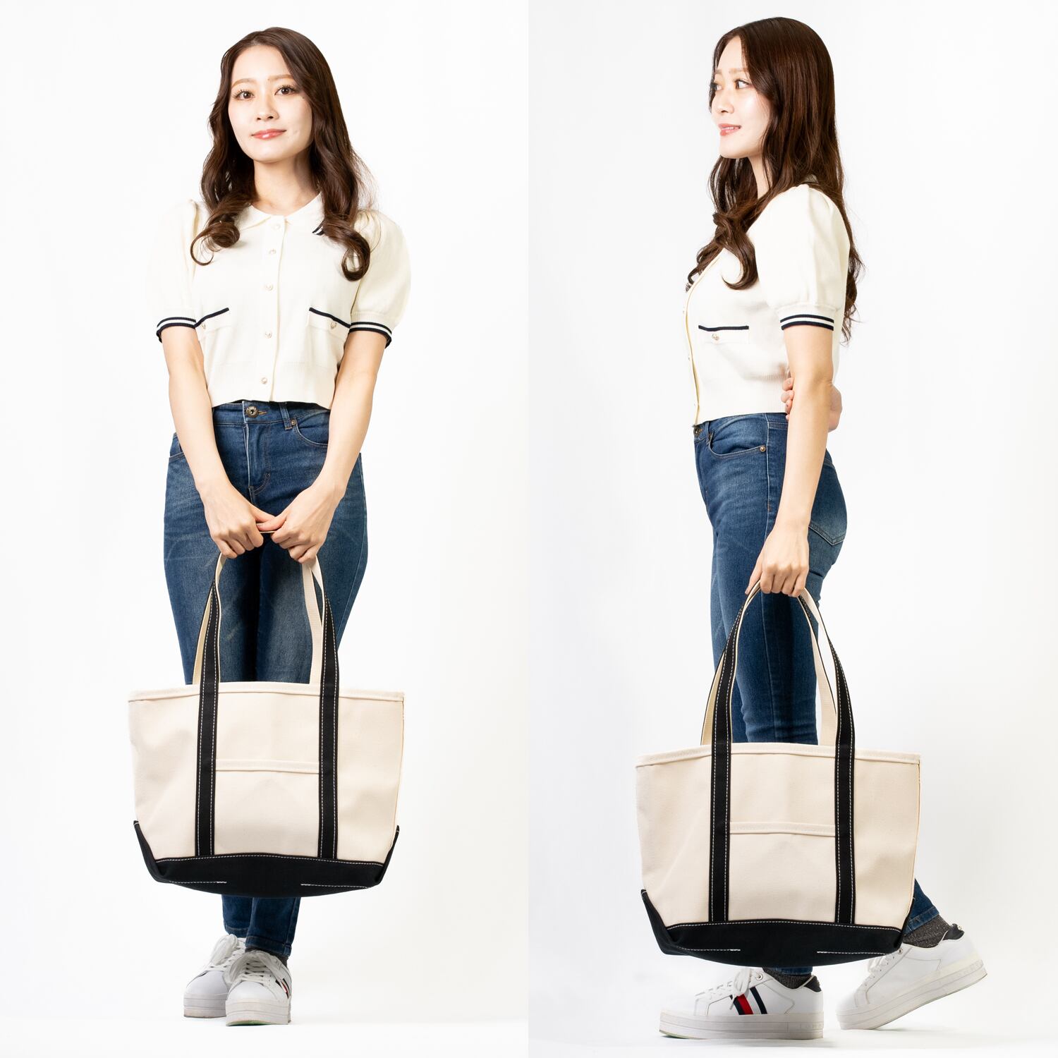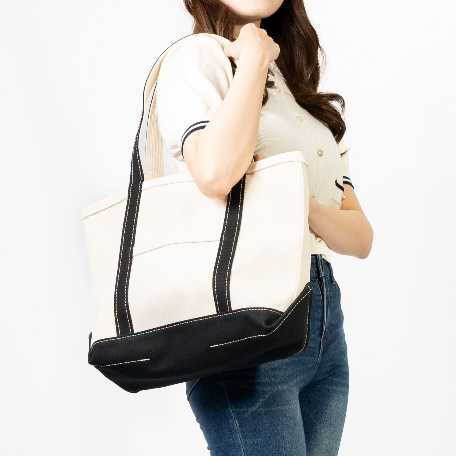 肩掛けしやすいロングハンドルのトートバッグです。