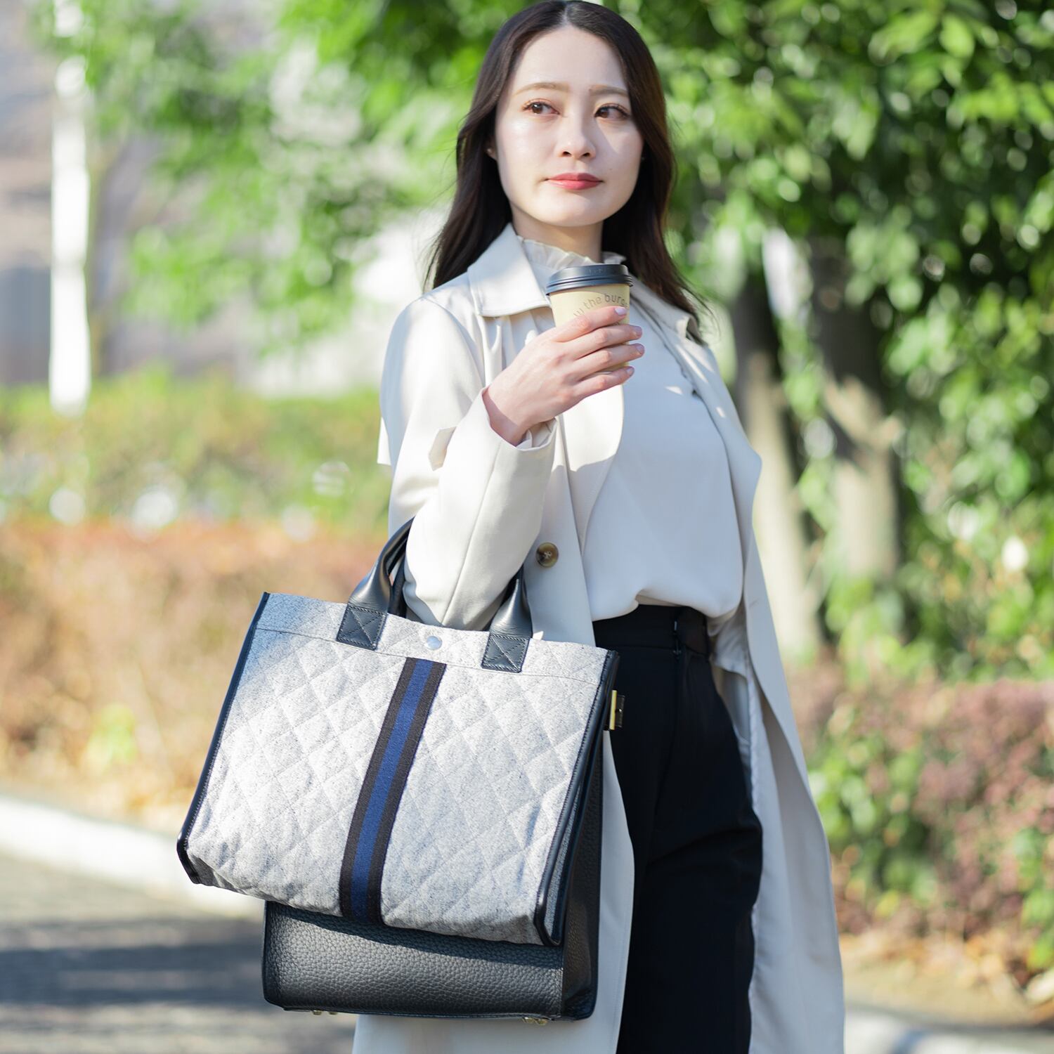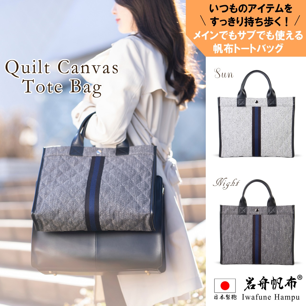 【日本製】レディース ビジネスバッグ 帆布 キャンバス トートバッグ ソルト&ペッパー キルト キャンバス (Sun)