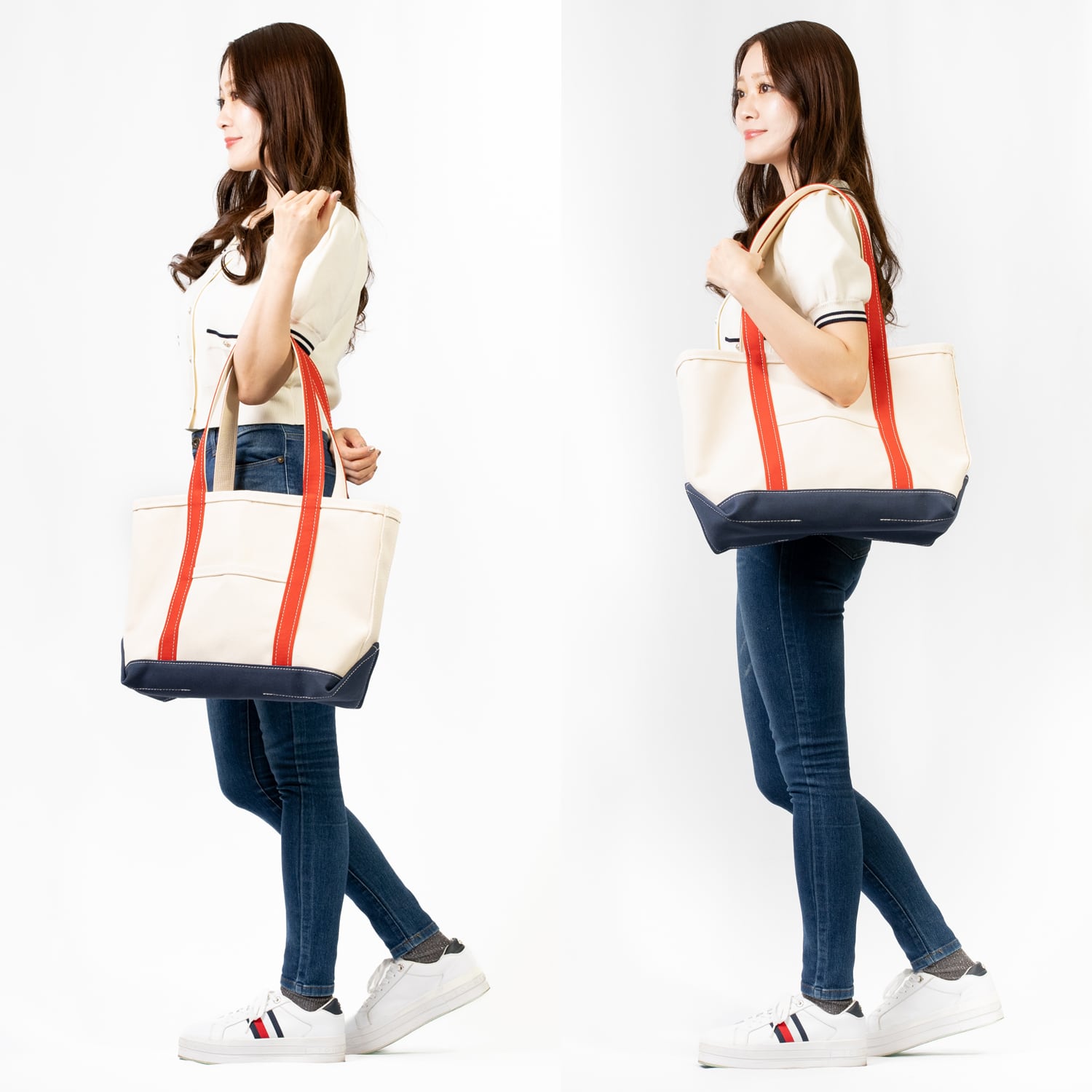 肩掛けしやすいロングハンドルのトートバッグです。