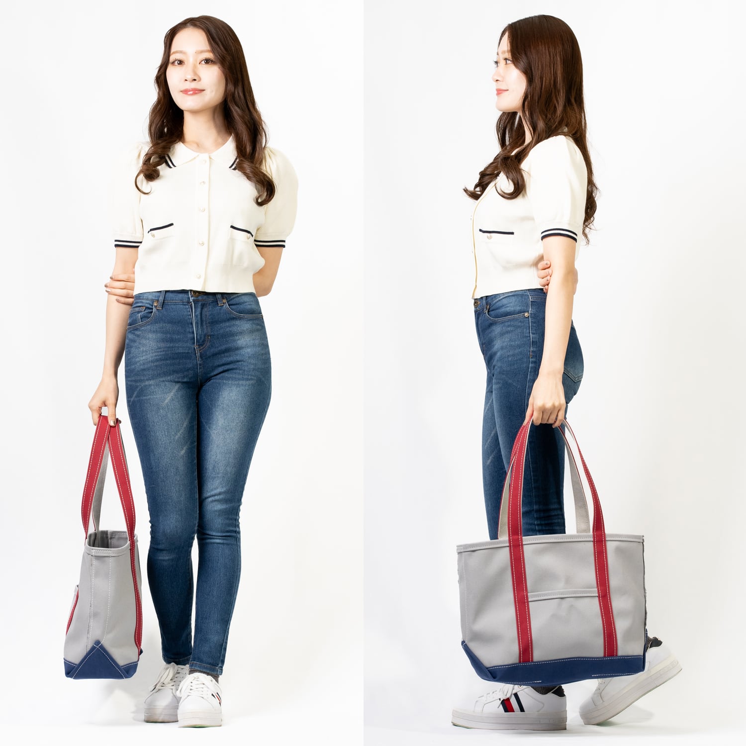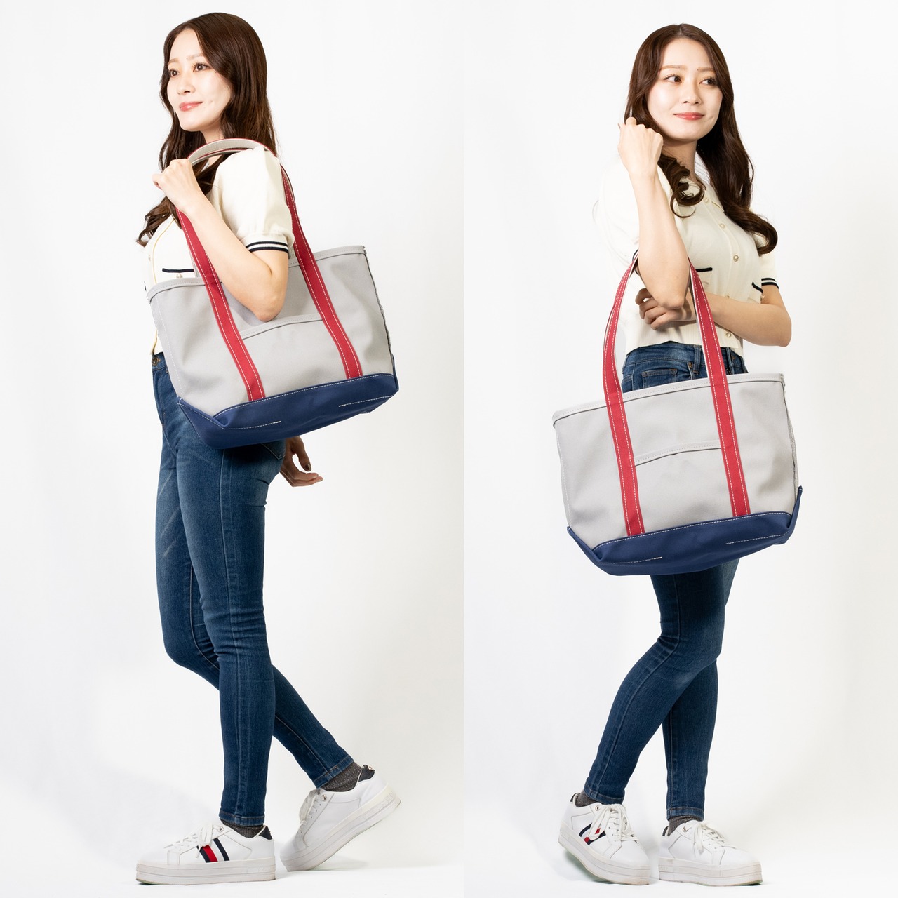 肩掛けしやすいロングハンドルのトートバッグです。