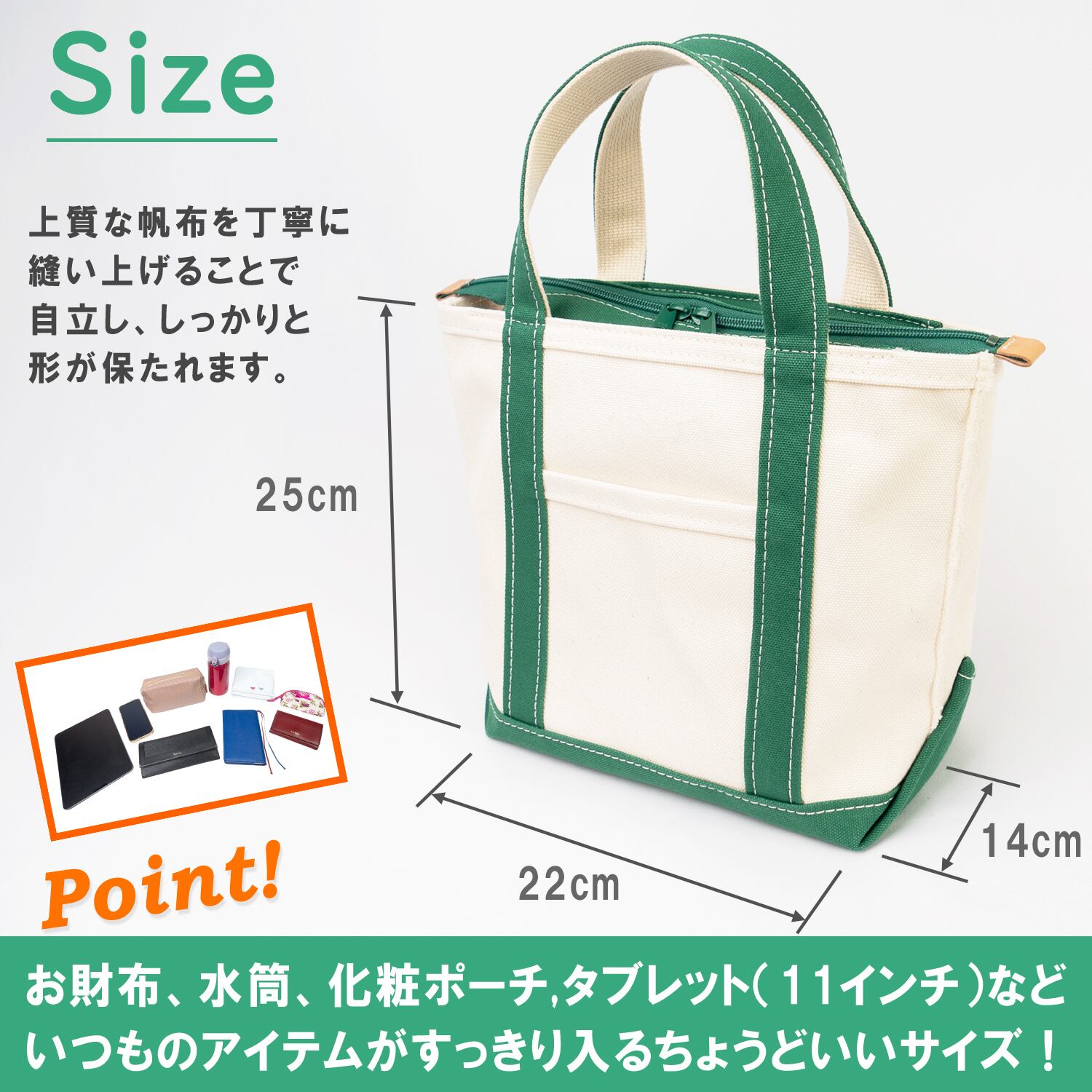 ファスナー付き 帆布 キャンバス トートバッグ Sサイズ 小さめ Ship and Rock Basic tote 日本製 (モスグリーン×アーミー×OD)