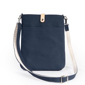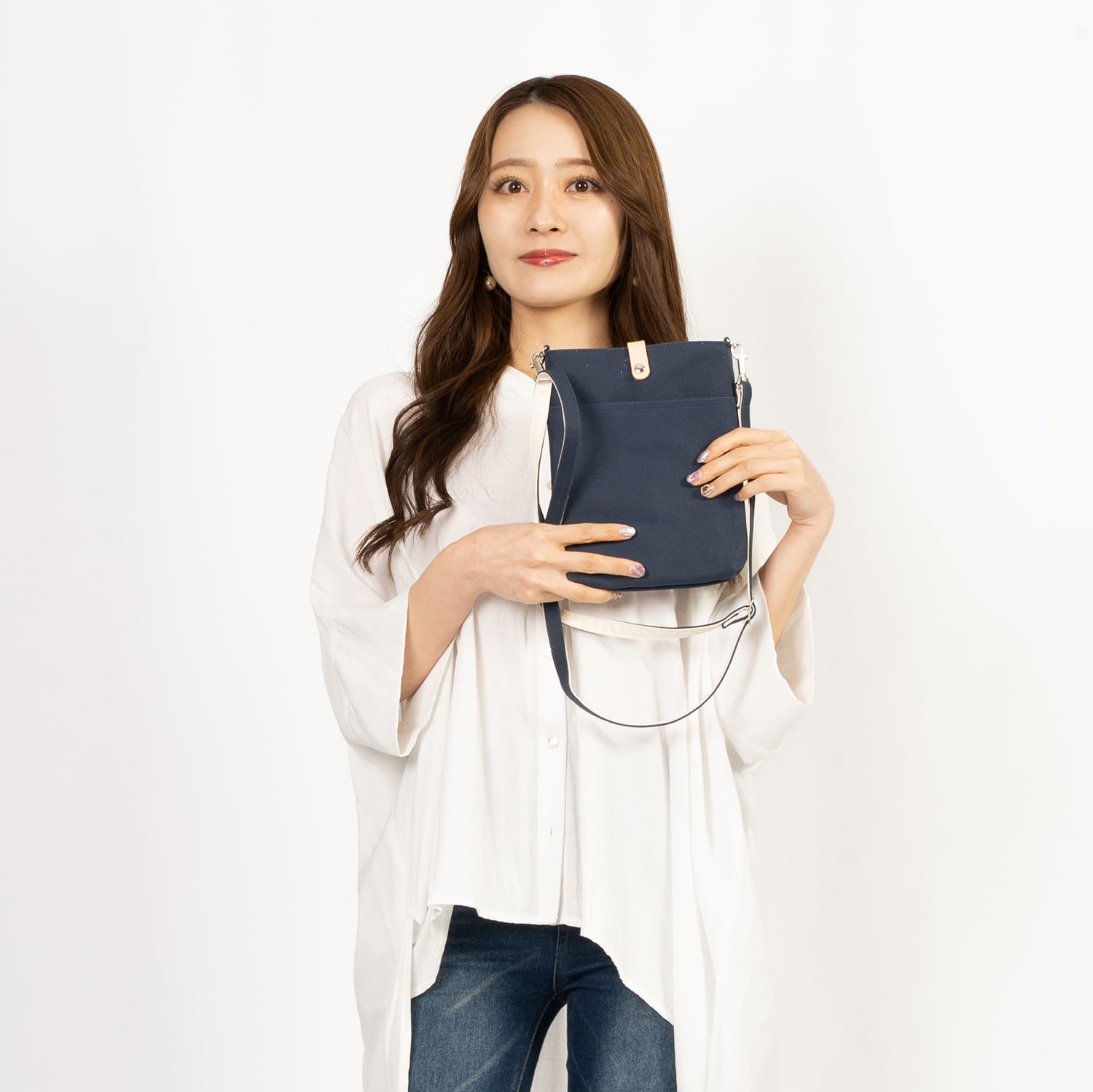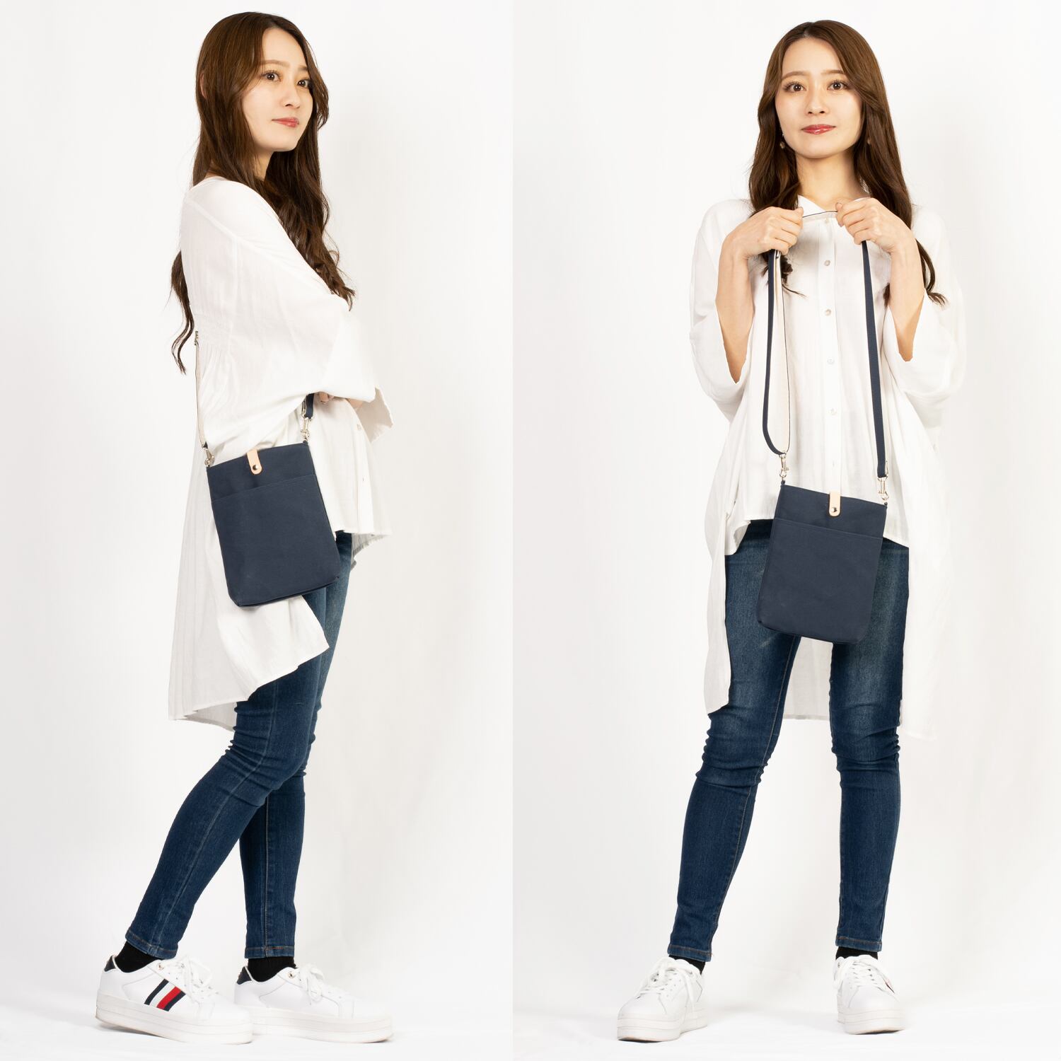 サコッシュ ショルダーバッグ ポーチ 小さめ スナップボタン付き 国産 帆布 日本製 (ネイビーブルー)